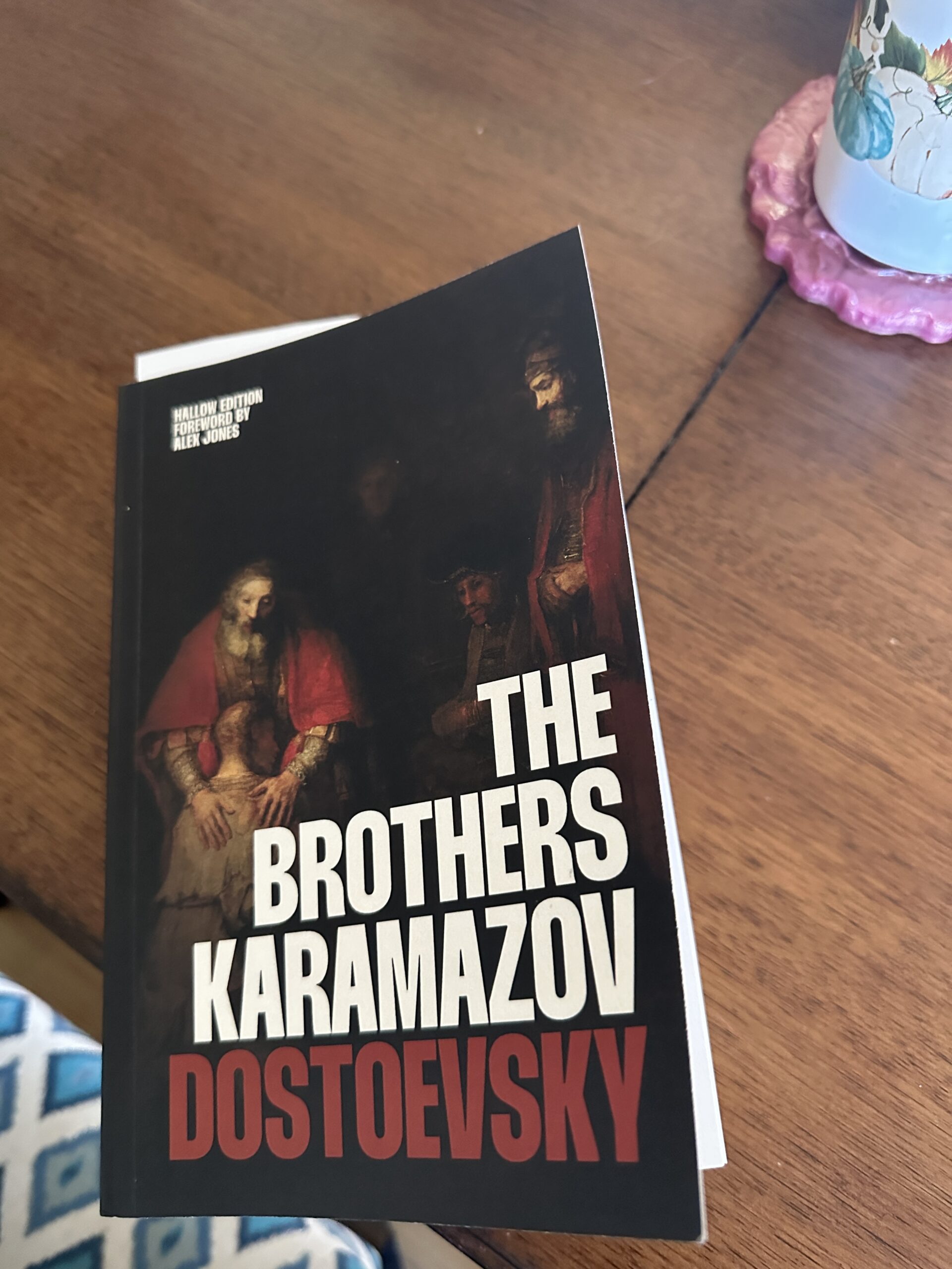 I’m reading the Dostoevsky novel, THE BROTHERS KARAMOV—one paragraph at a time.